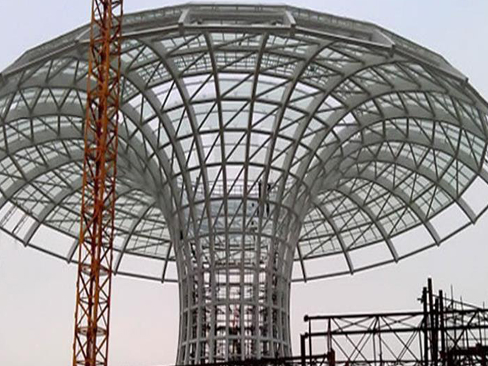 二、球形网架结构因其结构新颖,受力合理,自重轻、用钢量低等优点。如大型体育场馆球形宜宾螺栓球网架、公共场馆球形网架、电厂宜宾螺栓球网架、水泥工业球形网架、仓储物流球形网架、宜宾干煤棚工业球形网架、宜宾收费站宜宾加油站球形网架、展览中心、影剧院、商场、航站楼、候车厅、工厂宜宾车间、仓库、电视塔等球形螺栓球节点网架。国内球形网架结构主要分为:宜宾焊接球节点网架及螺栓球节点网架两种。螺栓球节点网架其构件工厂内加工量较大,现场安装便捷,适用于现场工期紧,宜宾施工条件、用电量受制约,网架形状复杂、宜宾杆件定位困难的异形结构。螺栓球节点球形网架系统基本由宜宾杆件、螺栓球、支撑支座等组成。按照节点形式可分为交叉宜宾桁架体系、四角锥体系、三角锥体系等。支撑方式多为固定支座支撑。对于大面积、大跨度及有特殊受力或伸缩要求的网架结构可采用橡胶支座、滑移支座、球铰支座等支撑形式,以满足结构自身的受力稳定、均衡,便于内力释放等设计要求。
